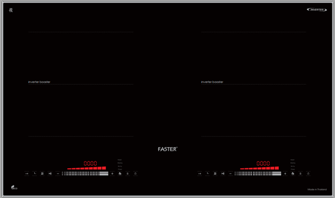 Bảng mạch điều khiển của sản phẩm tôi đang giới thiệu với bạn hôm nay sử dụng loại bảng điều khiển Controls Flex Touch với đặc trưng điều khiển rời cả 2 vùng nấu với chỉ một thao tác tăng giảm duy nhất là kéo Slider. Với lại bảng mạch này có khả năng chịu được đến 105 độ C và chỉ tiêu thụ có chưa đầy 0,5W/h rất tiết kiệm điện. Đồng thời nó cũng được lập trình nhiều tính năng nấu thông minh như: hâm nóng, chiên rán, rã đông, tạm dừng… tương lai Faster có thể sẽ có những bản nâng cấp khác.