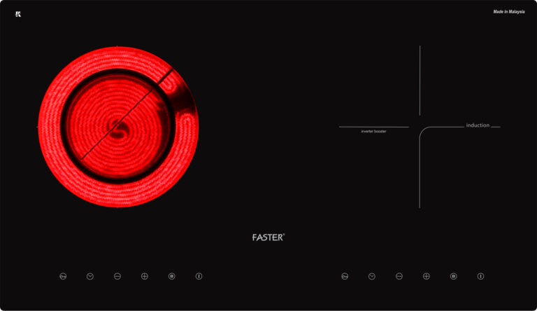 Bếp điện từ Faster FS 788HI gồm 2 vùng nấu với tổng công suất 4600W. Vùng nấu hồng ngoại trái trang bị mâm nhiệt Hi-light 02 vòng nhiệt có công suất là 800-2300W. Vùng nấu từ phải có công suất là 2000W khi kích hoạt tính năng nấu nhanh Booster công suất lên tới 2300W. Chỉ trong chốc lát sau khi kích hoạt tính năng này, nhiệt lượng trên vùng nấu từ tăng lên công suất tương đương với mức nhiệt lượng lớn nhất. Do đó, các món ăn được nấu chín nhanh hơn, tiết kiệm thời gian vào bếp cho chị em nội trợ. Chức năng Booster nấu siêu nhanh, tuy nhiên thời gian tối đa mặc định dùng chức năng này là 10 phút/lần tránh quá tải.