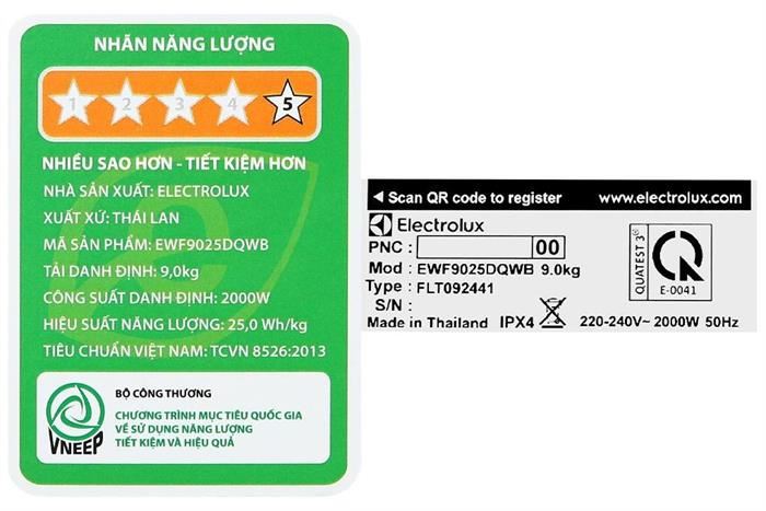 Lưu ý: Sản phẩm EWF9025DQWB sẽ có 2 mẫu sticker hiển thị khác nhau MOTOR & ECOINVERTER, Electrolux cam kết đảm bảo thời gian bảo hành động cơ 10 năm cho khách hàng theo đúng chính sách.