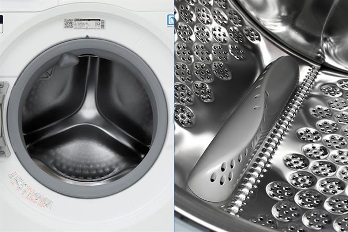 - Lồng giặt bằng thép không gỉ giúp nâng cao tuổi thọ và bảo vệ quần áo hiệu quả.