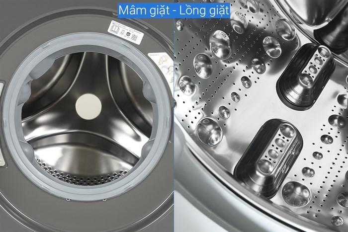- Lồng giặt bằng thép không gỉ hạn chế ăn mòn, chống oxy hóa, có độ bền cao.