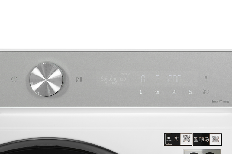 – Kết nối máy giặt với điện thoại thông qua ứng dụng SmartThings giúp bạn dễ dàng điều khiển các chức năng của máy từ xa một cách thuận tiện như remote tiện dụng.
