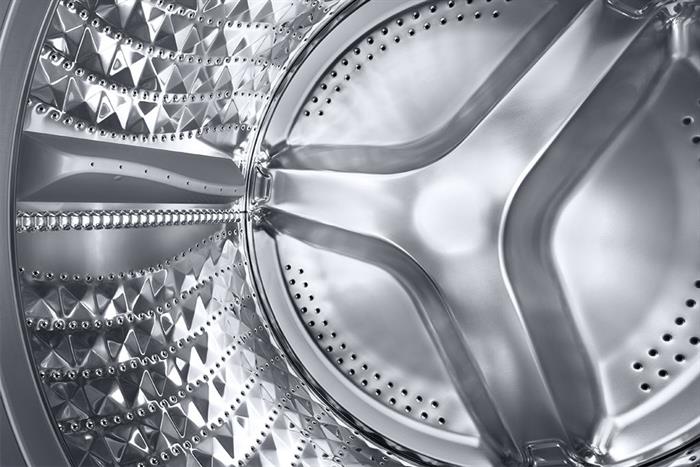 Lồng giặt được làm bằng thép không gỉ, giúp bảo vệ sợi vải khỏi hư tổn và tăng hiệu quả giặt sạch. Chất liệu này cũng hạn chế ăn mòn, nâng cao tuổi thọ cho máy giặt.