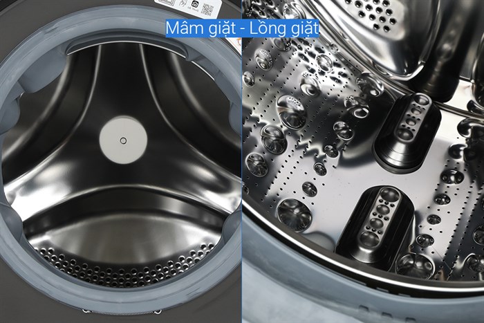 – Lồng giặt bằng chất liệu thép không gỉ giúp hạn chế vi khuẩn và nấm mốc phát triển, chống đóng cặn tốt, đem lại hiệu suất giặt giũ cao.