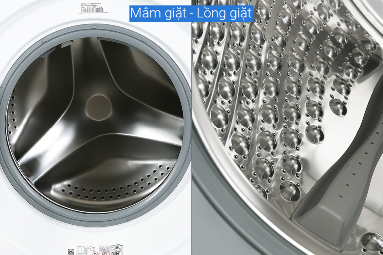 – Lồng máy giặt được làm bằng thép không gỉ, hạn chế được vi khuẩn, mảng bám, tăng độ bền cho máy giặt.