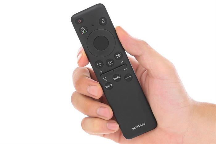 - Trang bị One Remote thông minh hỗ trợ sạc bằng ánh sáng, vừa tiết kiệm chi phí vừa bảo vệ môi trường. Bên cạnh đó, người dùng còn có thể điều khiển tivi bằng điện thoại qua ứng dụng SmartThings.
