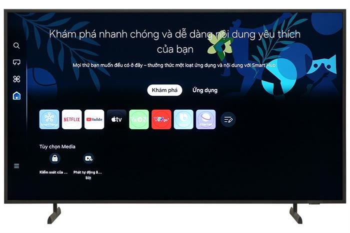 - Hệ điều hành Tizen™ trực quan, thân thiện với người dùng. Hệ điều hành tivi QLED khung tranh Samsung sở hữu kho ứng dụng phong phú, đáp ứng nhu cầu cơ bản giải trí và học tập của mọi thành viên trong gia đình.