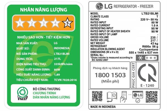 Tủ lạnh LG Inverter 217 lít LTB21BLMI được trang bị máy nén Smart Inverter Compressor™, giúp tiết kiệm đến 32% điện năng so với máy nén thông thường, tối ưu chi phí sinh hoạt. Động cơ hoạt động êm ái, giảm rung lắc và có độ bền cao, được bảo hành 10 năm, mang lại sự an tâm tuyệt đối. Công suất 90W đảm bảo hiệu quả làm lạnh mạnh mẽ, phù hợp cho nhu cầu sử dụng hàng ngày.
