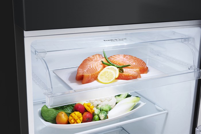 – Phía dưới ngăn lạnh là ngăn Fresh Zone, ngăn chuyên dụng để chứa rau và trái cây.