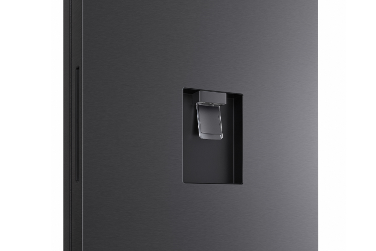 – Tủ lạnh có ngăn đá phía dưới, cùng với ngăn lấy nước ngoài mang tông màu chủ đạo màu đen mang hiện đại, sang trọng, mang đến giá trị thẩm mỹ cao cho không gian nội thất mà gia đình bạn bố trí tủ.